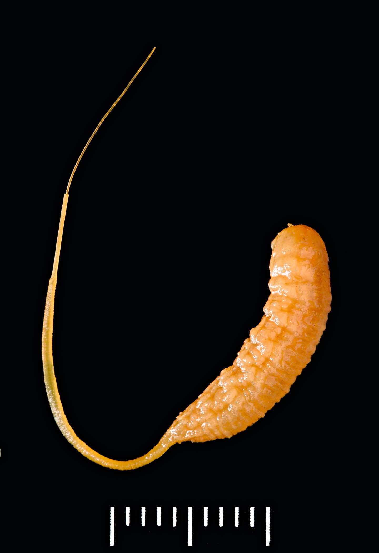 breathe through spiracles or holes along their bodies. Though many maggots can breathe from their abdomens, this process frees up the mouth for eating, most larvae would not be able to breathe in these oxygen-poor environments. But these larvae have adapted their body with an elongated anal spiracle, their siphon, which enables them to feed in this rotting substance while breathing the air above.